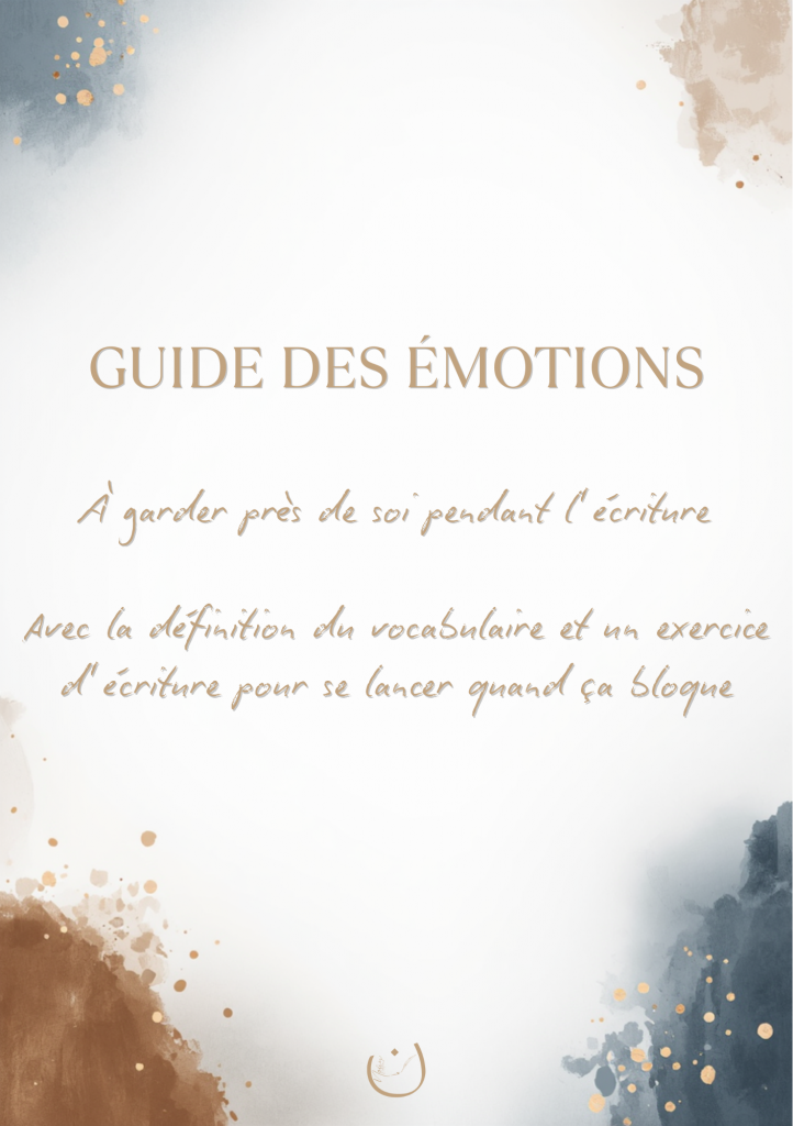 Un guide des émotions pour nommer ses ressentis avec précision et une fiche d’exercice pour débloquer sa plume.